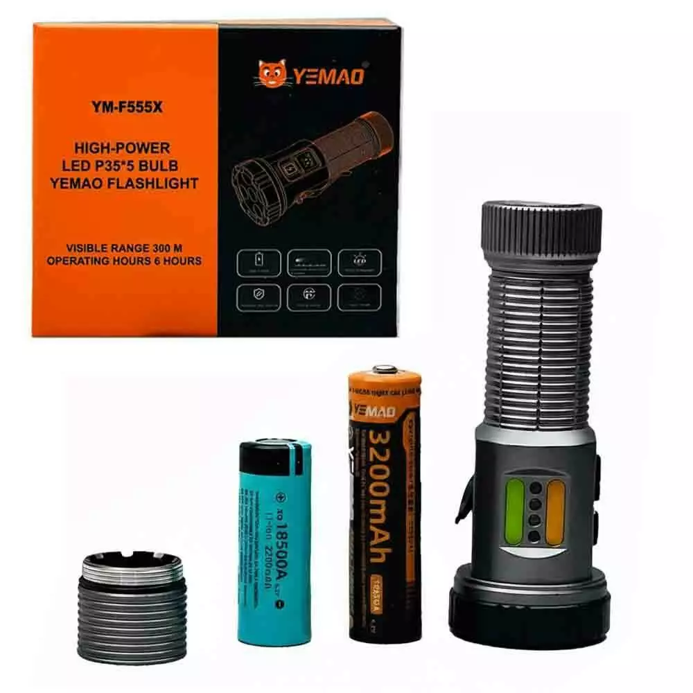 Ліхтар YEMAO YM-F555X 5P35+4LED(RED+BLUE), 1x18650/18500, ЗУ Type-C, магніт, затискач