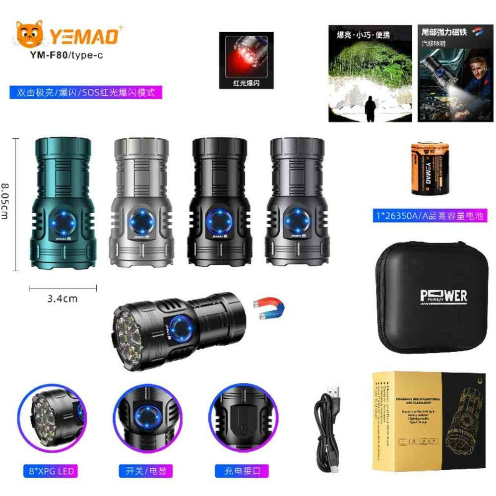 Ліхтар YEMAO YM-F80 8XPG(White+Red), 1x26350, ЗУ Type-C, магніт