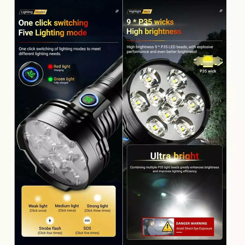 Ліхтар YEMAO YM-F99-9 9P35, 1x32850, Power Bank, ЗУ Type-C
