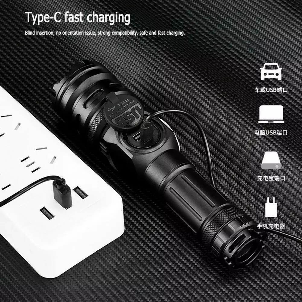 Комплектація: ліхтар, 1x26650 акумулятор, USB кабель для заряджання