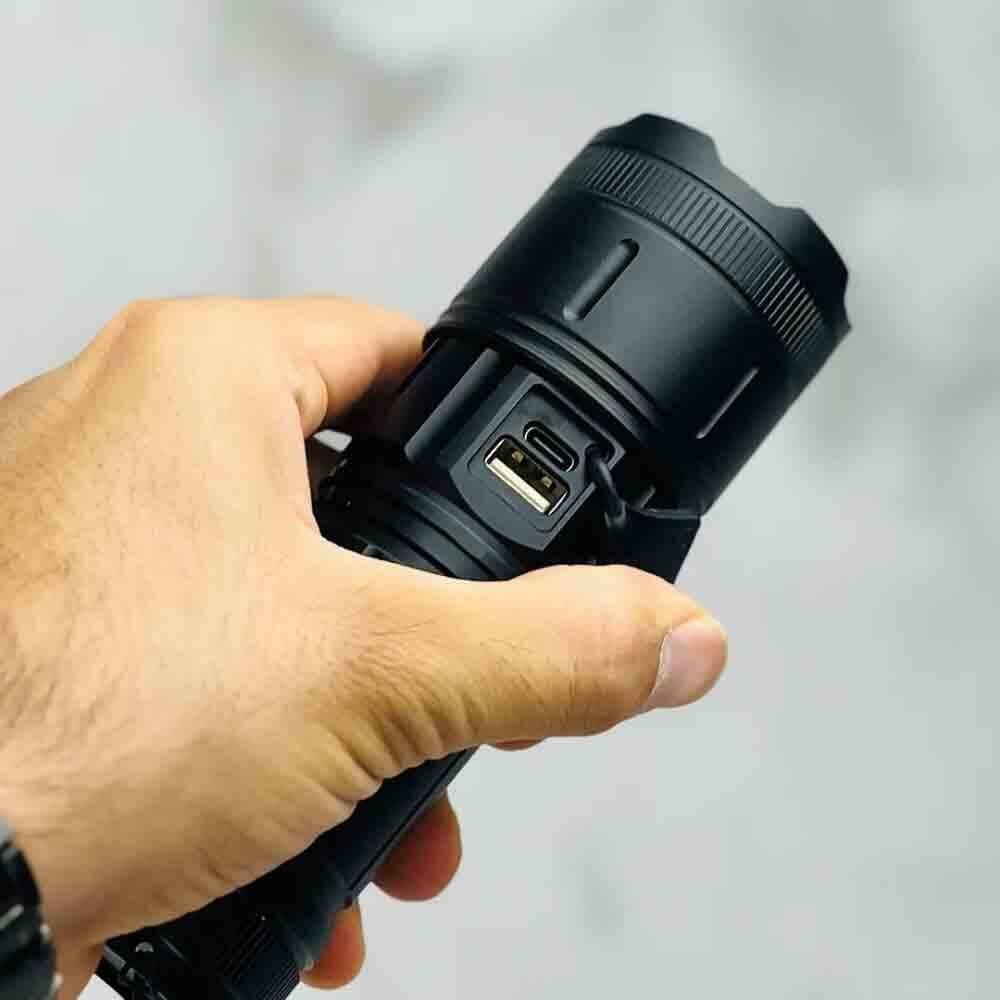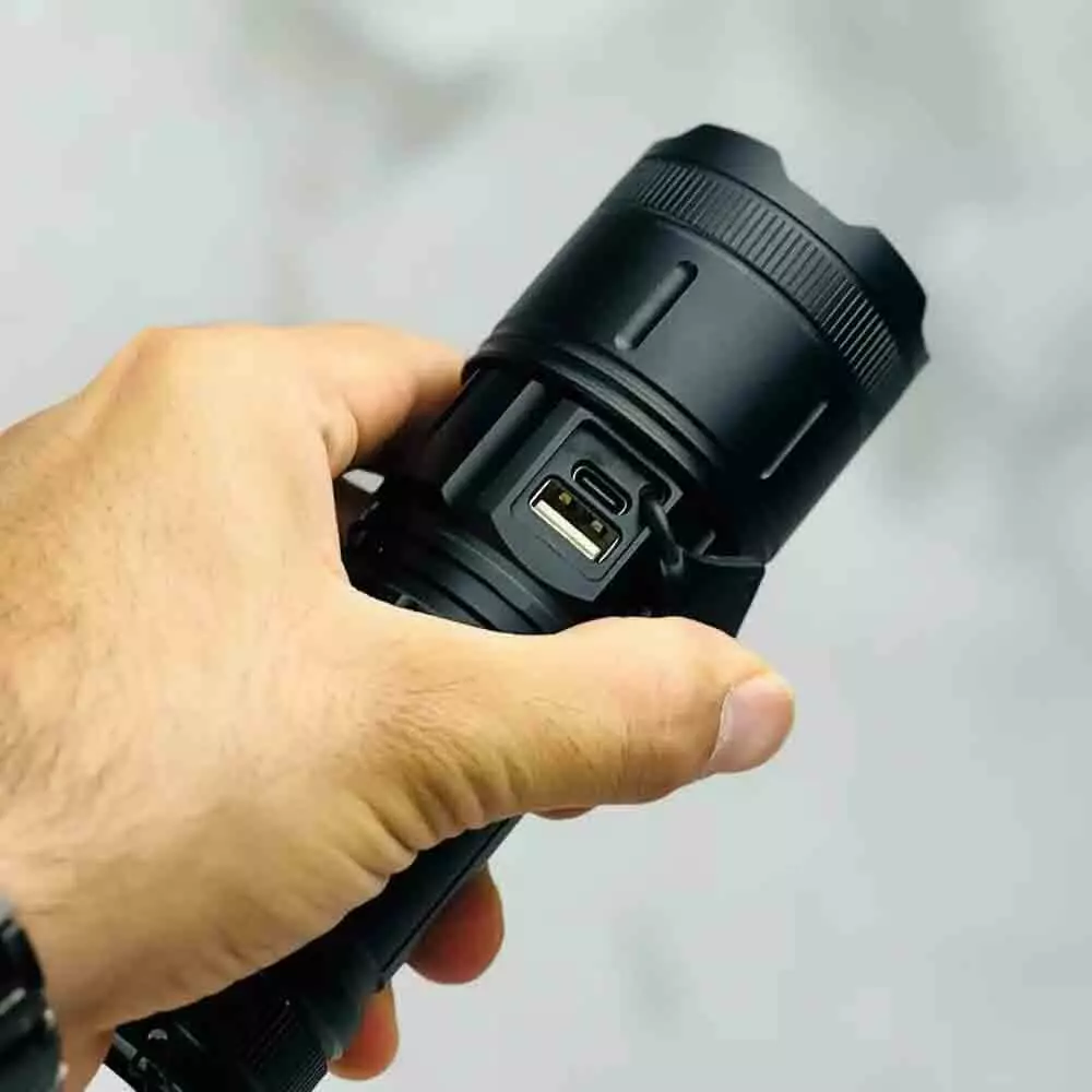 Комплектація: ліхтар, 1x38650 акумулятор, USB кабель для заряджання