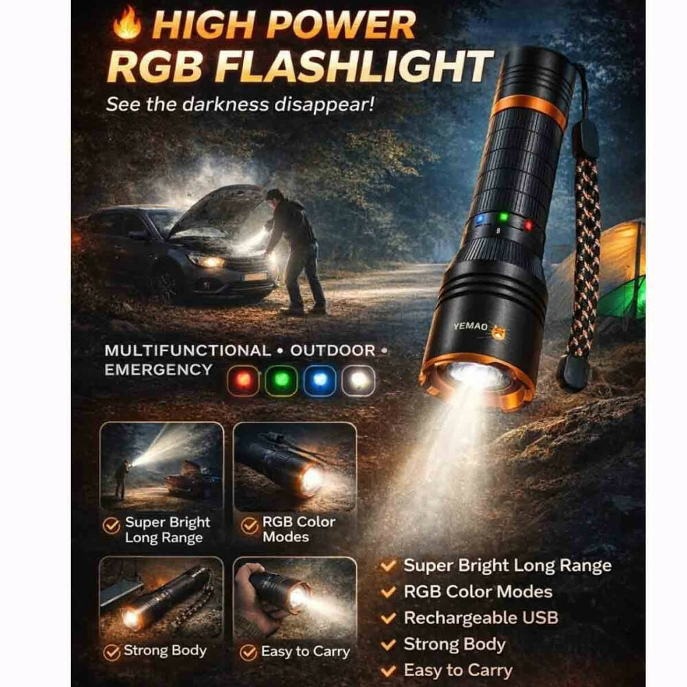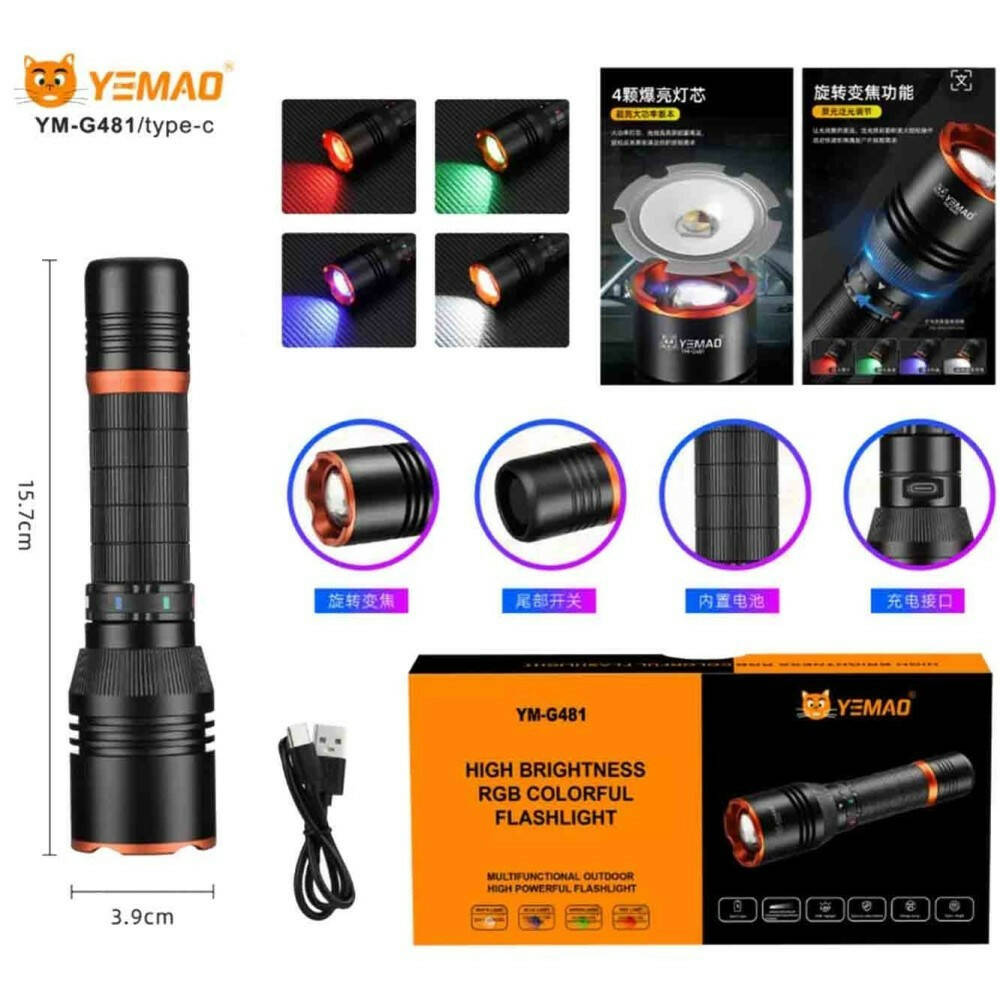 Ліхтар YEMAO YM-G481 4LED(Red+Green+Blue+White), Li-Ion акумулятор, ЗУ Type-C, zoom