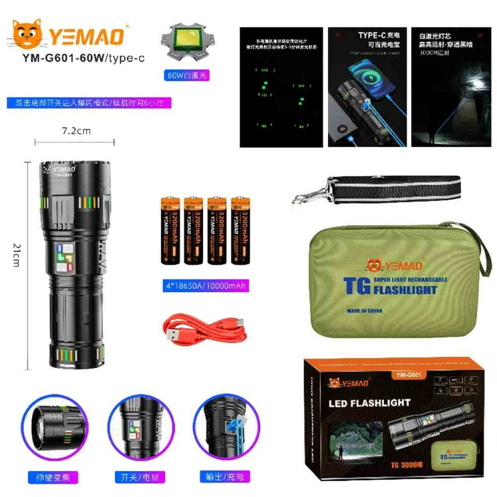 Ліхтар YEMAO YM-G601 TG 60W, 4x18650, Power Bank, ЗУ Type-C, zoom, кейс