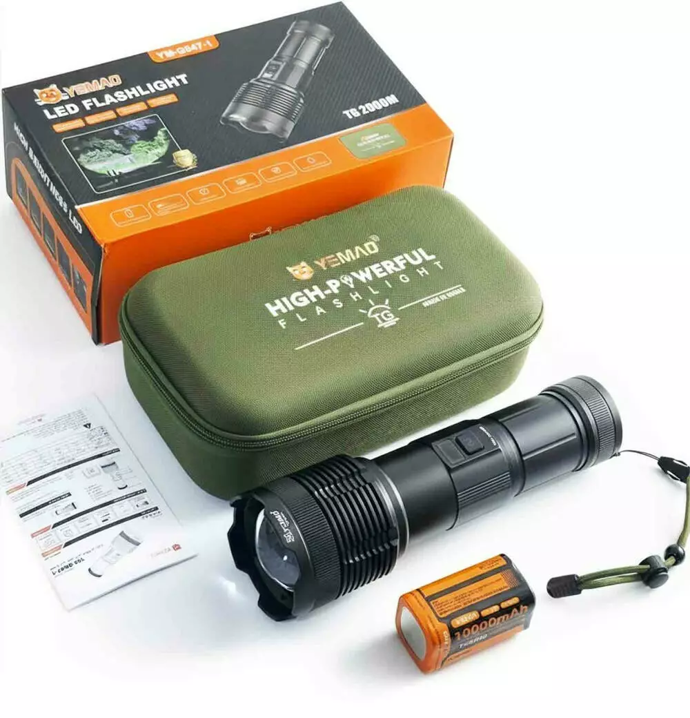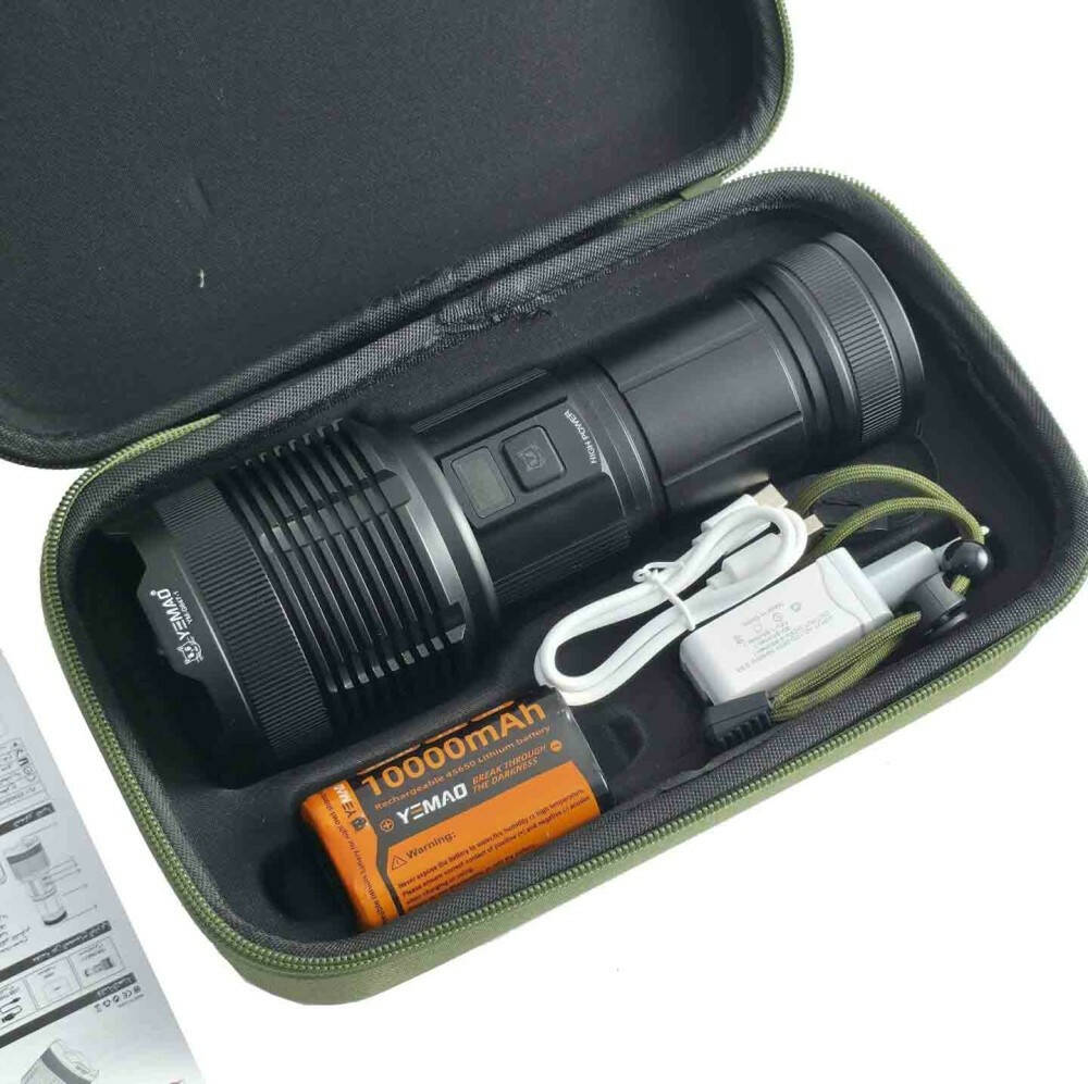 - Комплектация: фонарь, 1x45650 аккумулятор, USB кабель для зарядки, кейс, адаптер питания