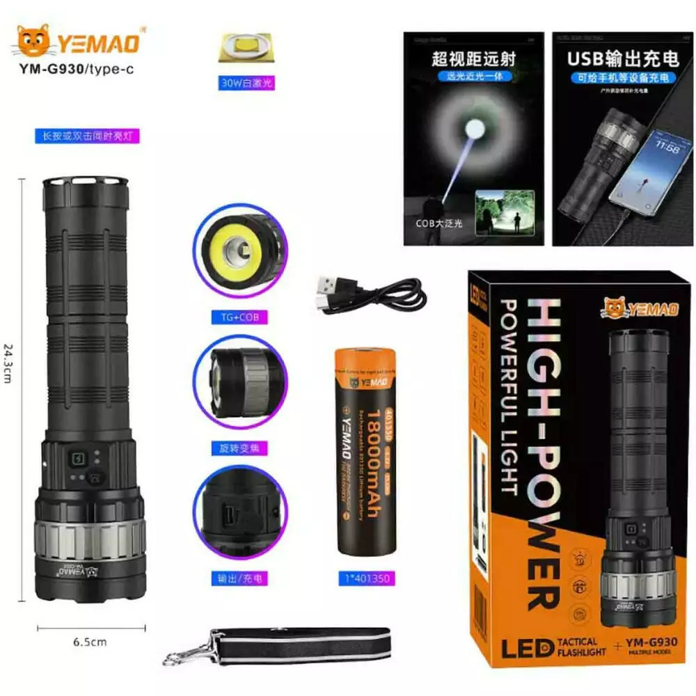 Ліхтар YEMAO YM-G930 TG 30W+COB, 1x401350, Power Bank, ЗУ Type-C, zoom