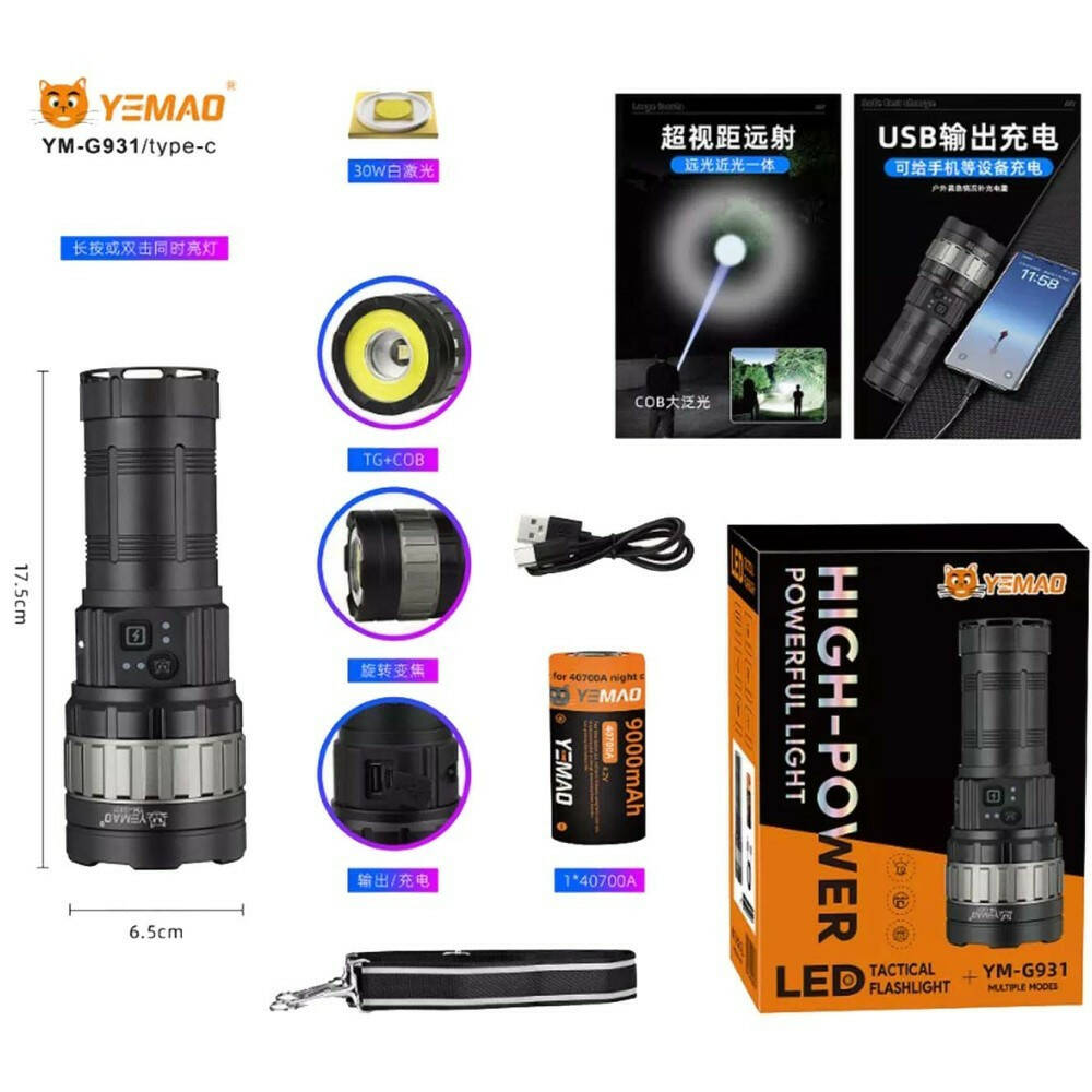 Ліхтар YEMAO YM-G931 TG 30W+COB, 1x40700, Power Bank, ЗУ Type-C, zoom