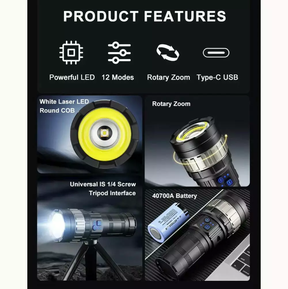Комплектація: ліхтар, 1x40700 акумулятор, USB кабель для заряджання, ремінець