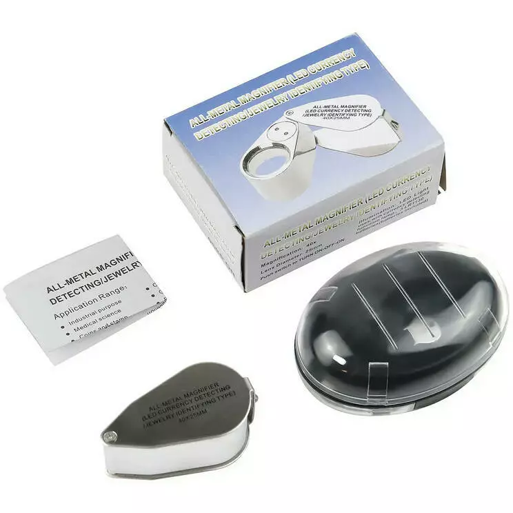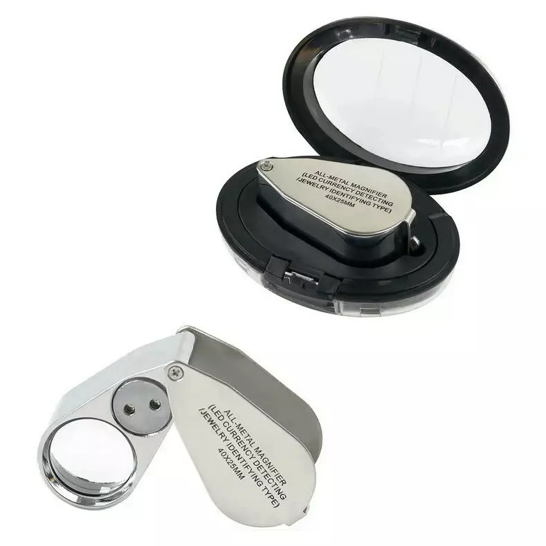 Лупа складана 40x з LED та UV-підсвічуванням, металева MG-9890