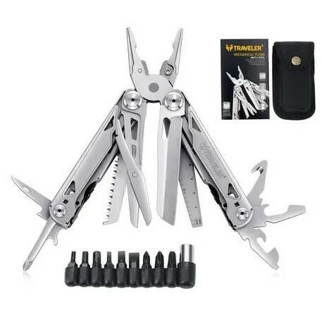 Мультитул тактичний Traveler MQ064DG Silver 28 в 1, комплект біт, з чохлом, з плоскогубцями 16,2 см