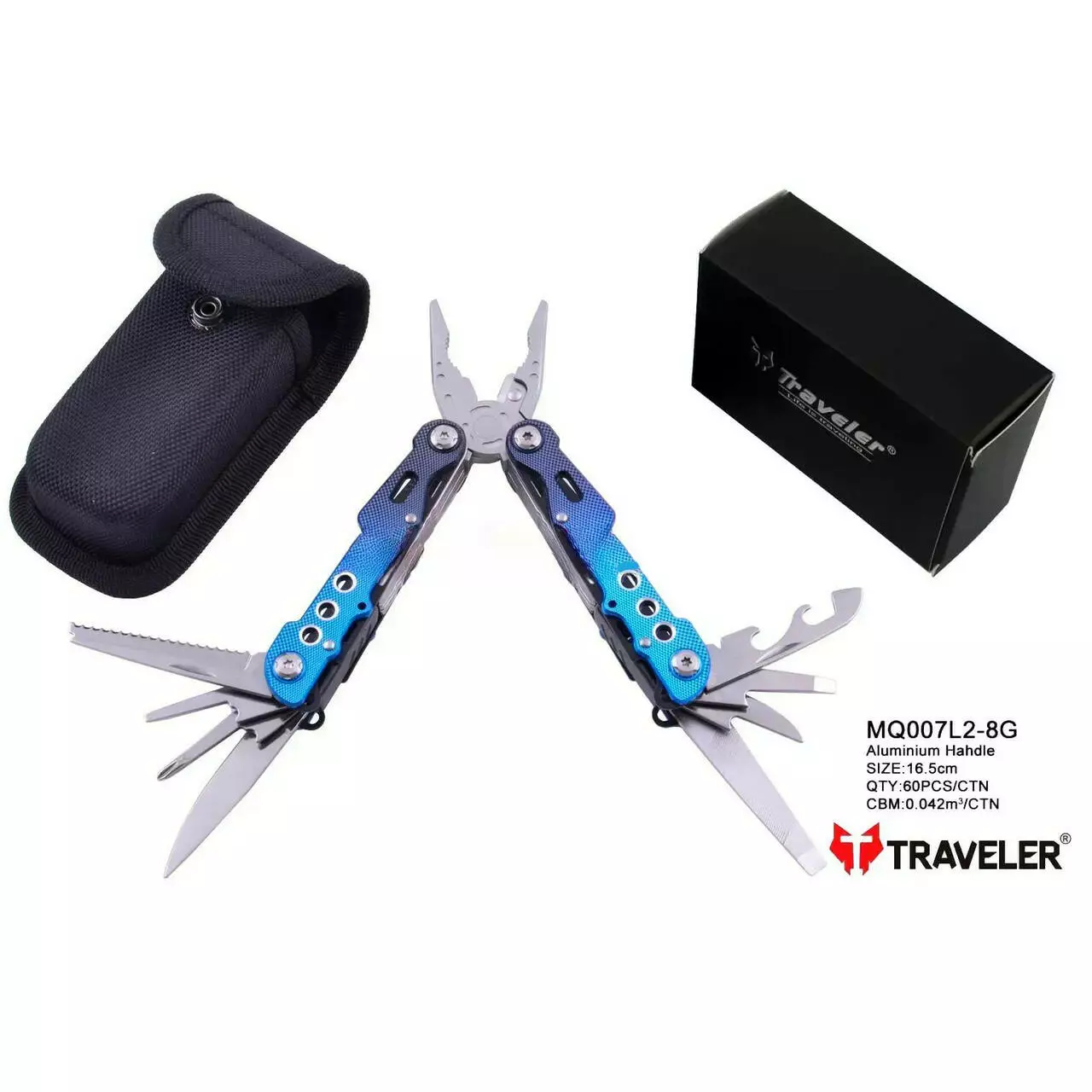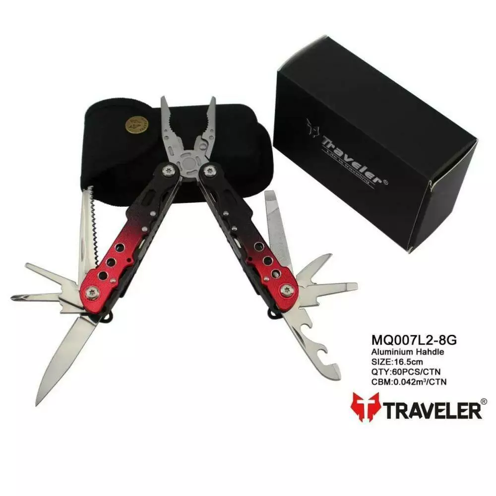 Мультитул Traveler MQ-007-L2-8G Red/Blue 9 в 1 туристичний, армійський, тактичний, з чохлом 16,2см