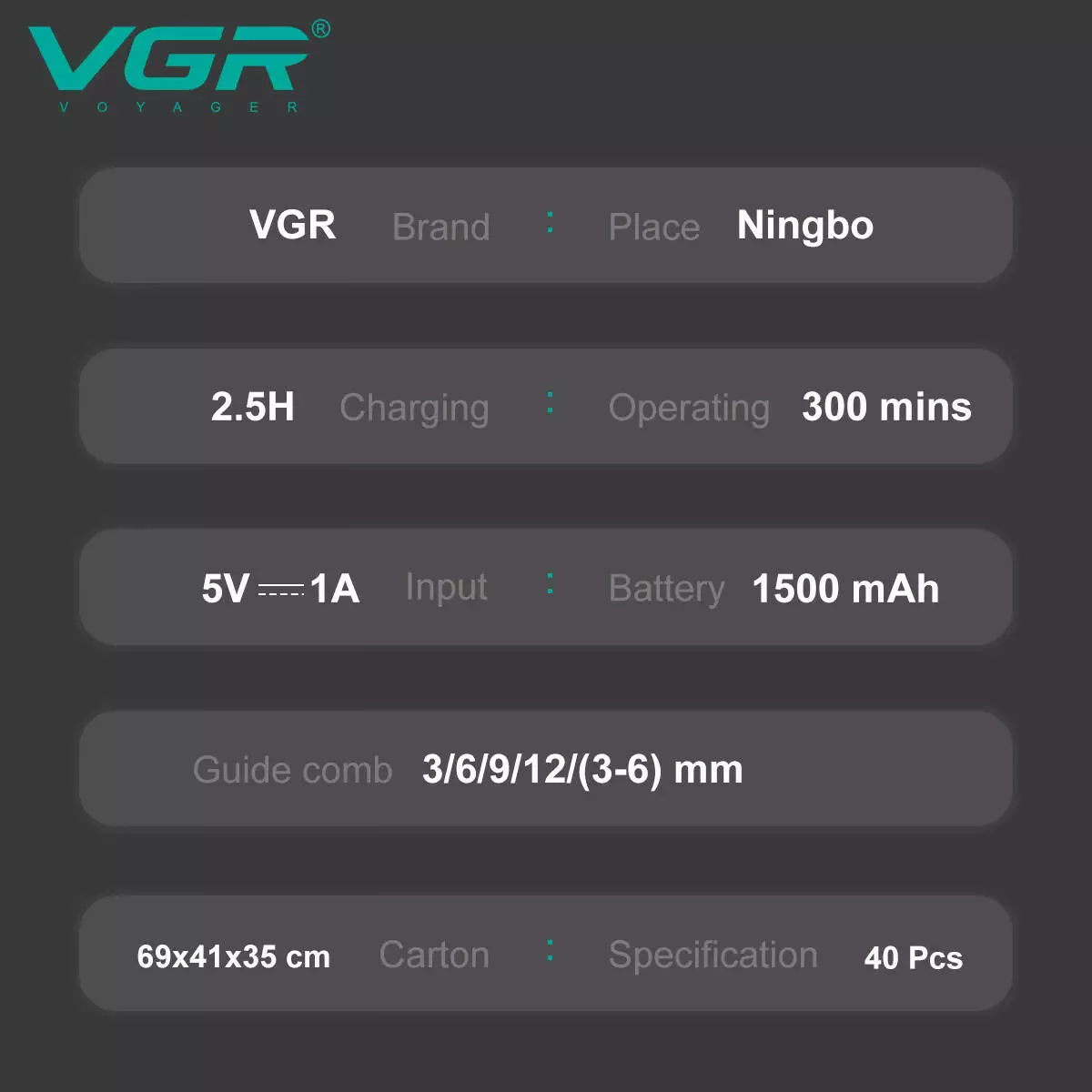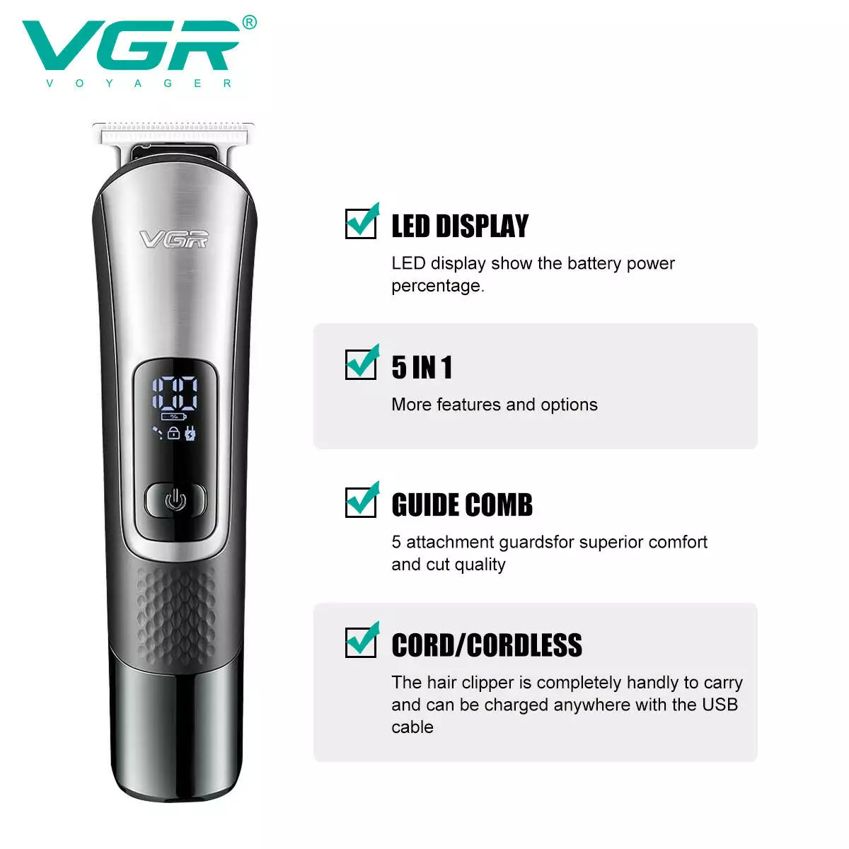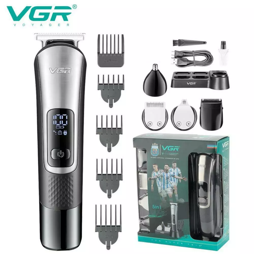 Набір для стриження VGR 5 в 1 V-111, 9 насадок, LED display