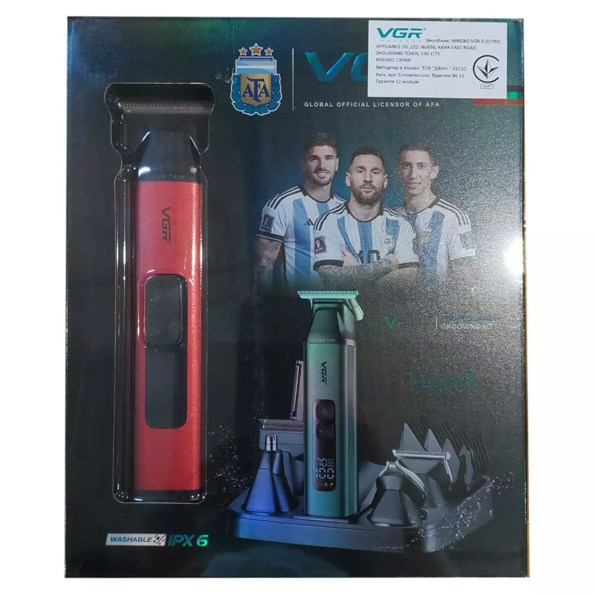 Набір для стрижки VGR 6 в 1 V-117 RED, 14 насадок, LED Display