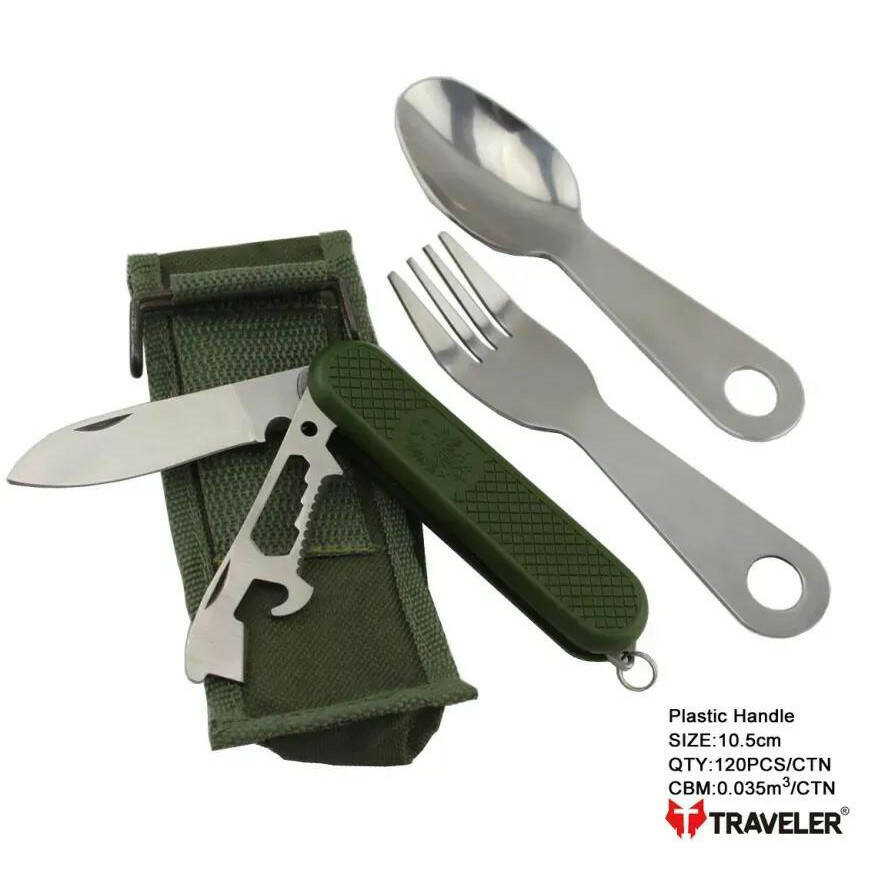 Набір туристичний ніж, виделка, ложка Traveler 10,5см K-601
