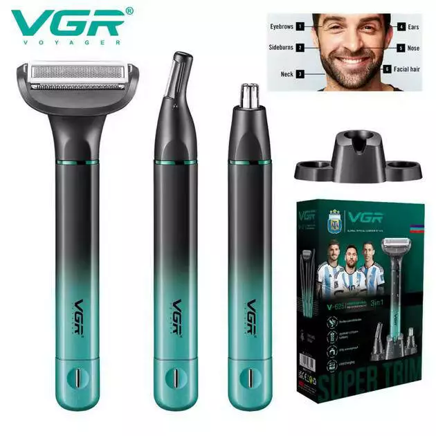 Набір VGR 3 в 1 V-625, 3 насадки (для носу, обличчя та тіла), IPX5