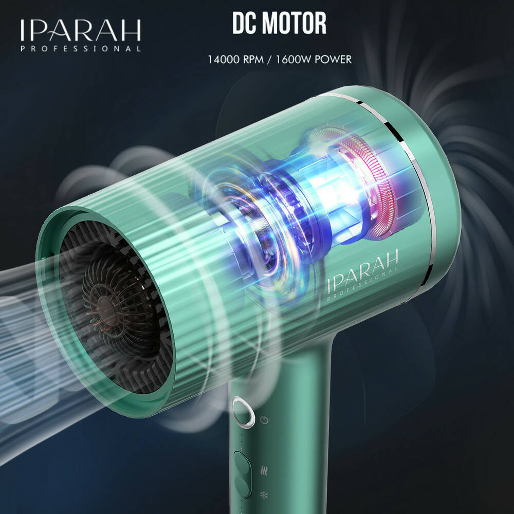 Професійний фен IPARAH P-300G GREEN, 2 рівня обдува, 3 рівня температури, 1500W-1600W, ефірна олія