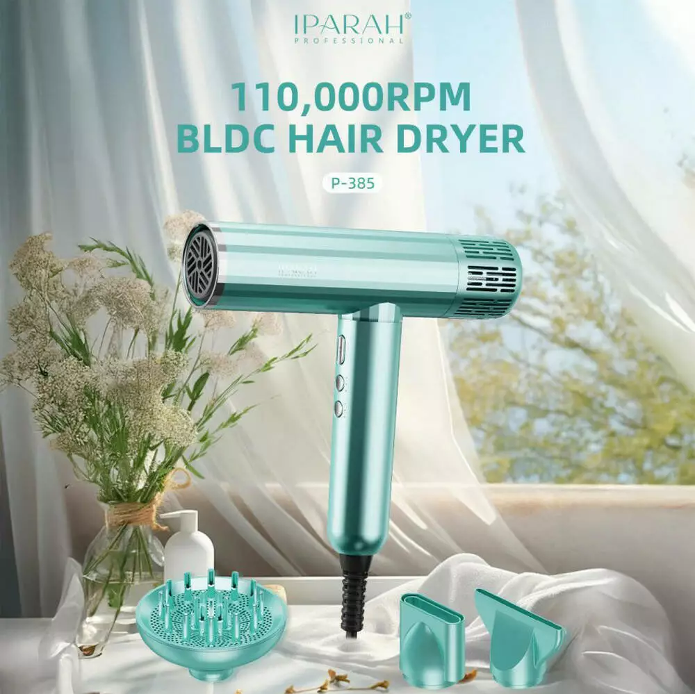 Професійний фен для волосся IPARAH BLDC Hair Dryer з високоефективним безщітковим мотором BLDC - це сучасний засіб для швидкого, дбайливого та рівномірного сушіння волосся. Висока швидкість обертання мотора (≈110 000 об/хв) забезпечує потужний потік повітря, скорочуючи час сушіння навіть густого волосся та створюючи професійний результат. Регульовані рівні температури та режими швидкості обдування дозволяють підібрати оптимальні параметри для індивідуальних завдань, а функція подачі холодного повітря допомагає закріпити зачіску та надати волоссю додаткового блиску. Технологія іонізації зменшує статичну електрику, роблячи волосся більш гладким і доглянутим. Ергономічний корпус та довгий кабель забезпечують комфорт використання як удома, так і в салоні.