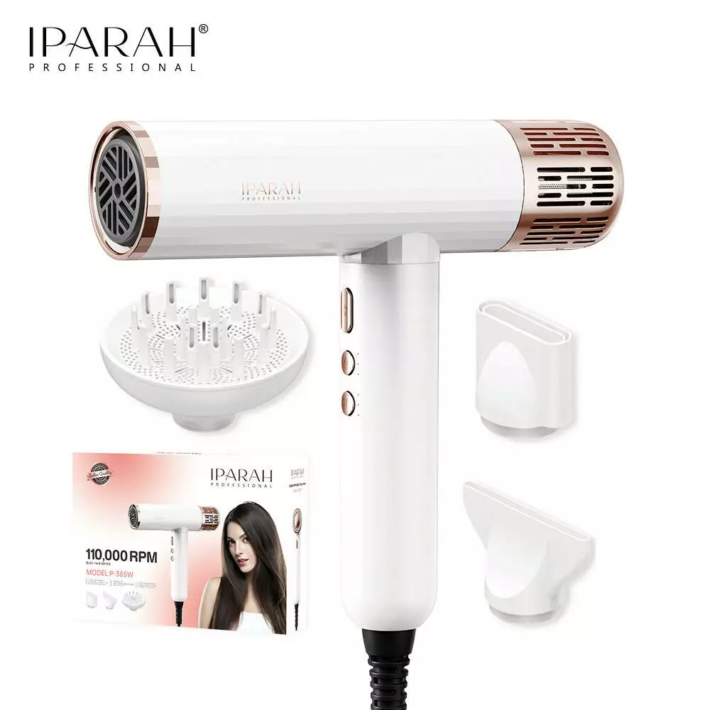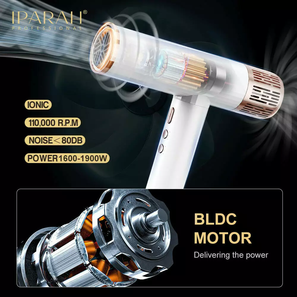 Професійний фен для волосся IPARAH BLDC Hair Dryer з високоефективним безщітковим мотором BLDC - це сучасний засіб для швидкого, дбайливого та рівномірного сушіння волосся. Висока швидкість обертання мотора (≈110 000 об/хв) забезпечує потужний потік повітря, скорочуючи час сушіння навіть густого волосся та створюючи професійний результат. Регульовані рівні температури та режими швидкості обдування дозволяють підібрати оптимальні параметри для індивідуальних завдань, а функція подачі холодного повітря допомагає закріпити зачіску та надати волоссю додаткового блиску. Технологія іонізації зменшує статичну електрику, роблячи волосся більш гладким і доглянутим. Ергономічний корпус та довгий кабель забезпечують комфорт використання як удома, так і в салоні.