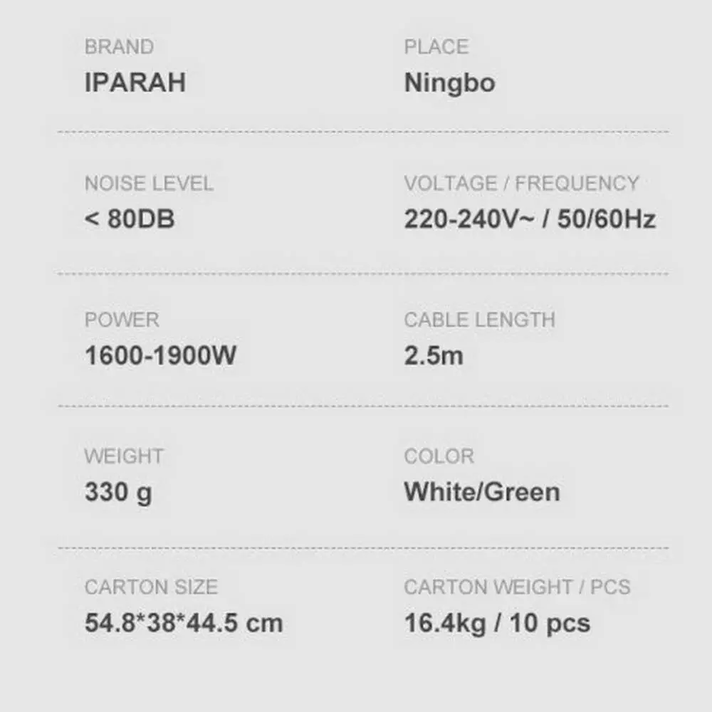 Професійний фен IPARAH P-385W WHITE, 3 рівні обдування, 3 рівні температури, 1600-1900W