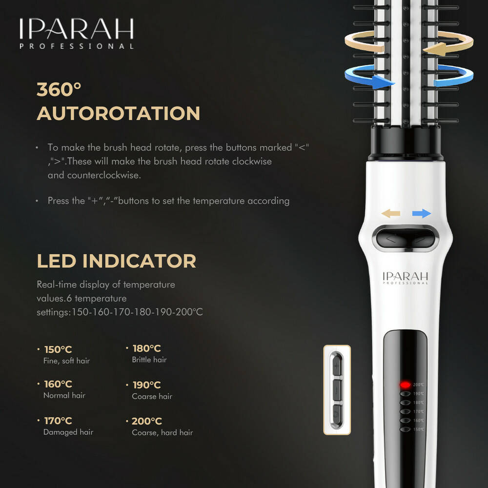 Професійна автоматична щітка для завивки волосся IPARAH P‑280 Automatic Curling Brush - це сучасний прилад, який дозволяє швидко і легко створювати акуратні локони і м'які хвилі без зайвих зусиль. Пристрій оснащений високоефективним нагрівачем PTC і стрижнем з керамічним покриттям, що забезпечує швидке і рівномірне нагрівання. Регульовані температурні рівні дозволяють підібрати оптимальний режим для різних типів волосся, а кабель, що обертається на 360°, забезпечує зручність і свободу рухів під час укладання. Функція автоматичного відключення підвищує безпеку експлуатації, а технологія негативних іонів допомагає зменшити статичну електрику та зробити локони гладкішими та блискучими. Це ідеальний інструмент для створення як повсякденних, так і вечірніх зачісок як вдома, так і професійного середовища.