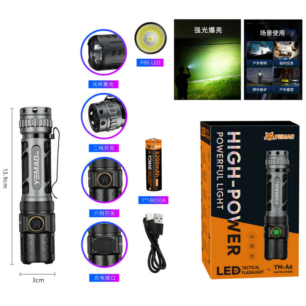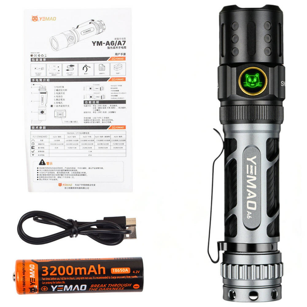 Тактичний ліхтар YEMAO YM-А6, 2200LM, акумулятор 18650 (3200 mAh)