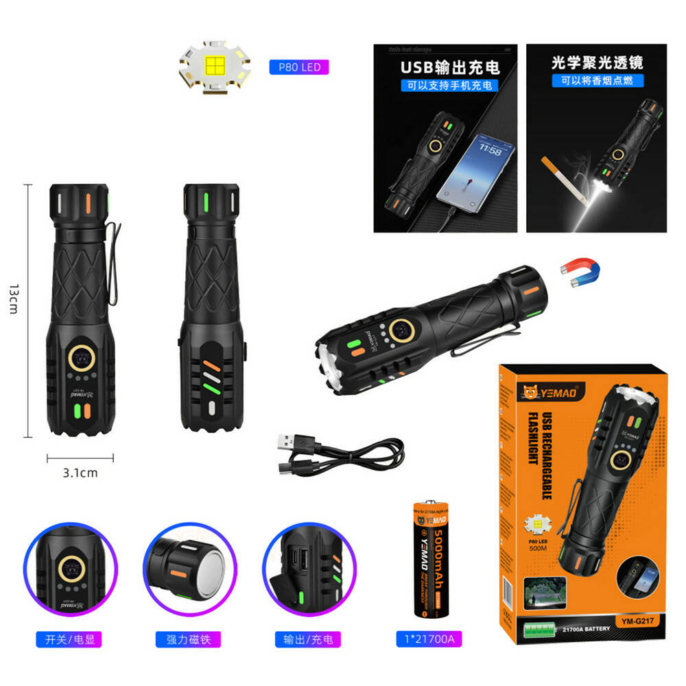 Тактичний ліхтар YEMAO YM-G217, 2000LM, акумулятор 21700 (5000 mAh)