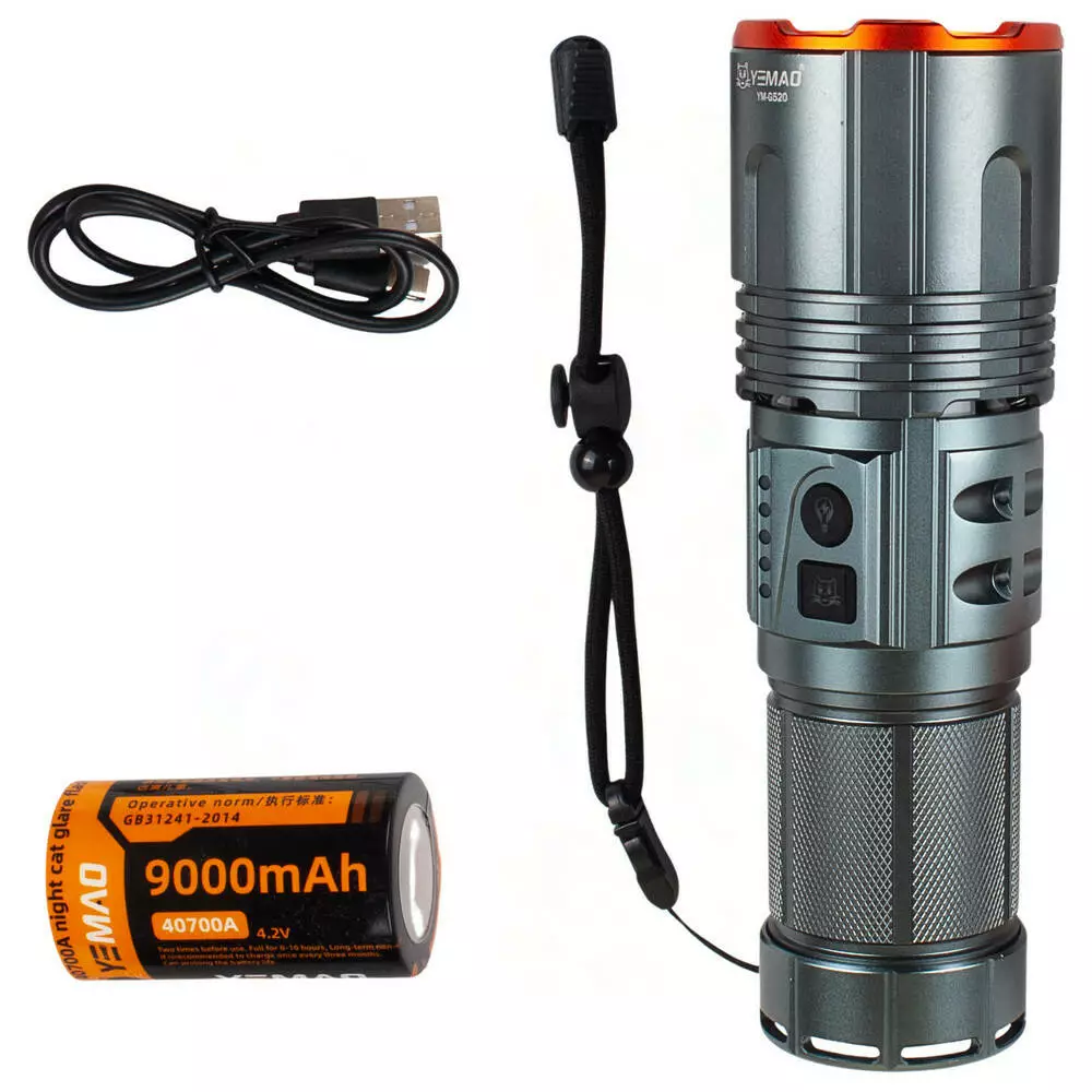 Тактичний ліхтар YEMAO YM-G520, 2500LM, акумулятор 40700 (9000 mAh), функція лампи