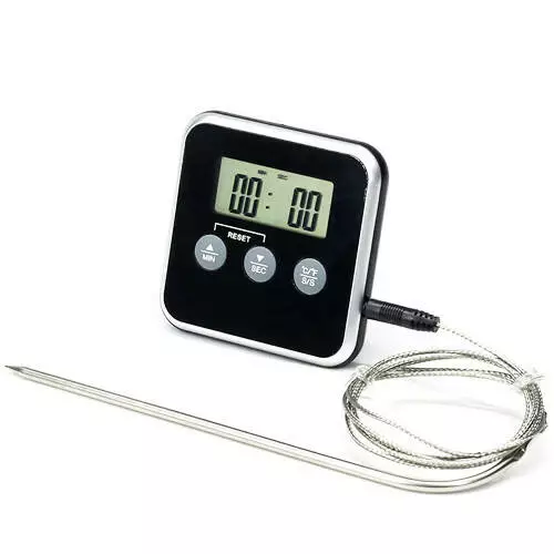 - Дополнительные характеристики: Кухонный термометр для барбекю, выпечки, мяса, вина и т.д. с таймером, зонд из нержавеющей стали, магнит