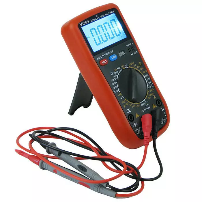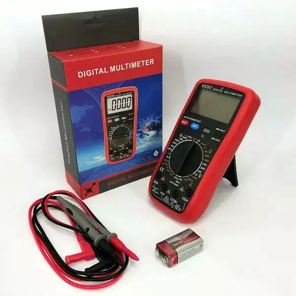 - Дополнительные характеристики: чехол/ подсветка/ автовыключение/ тестирование диодов/ транзисторов/ зум/ подставка/ память