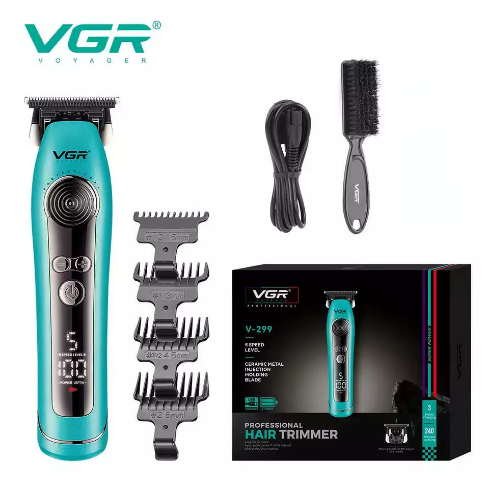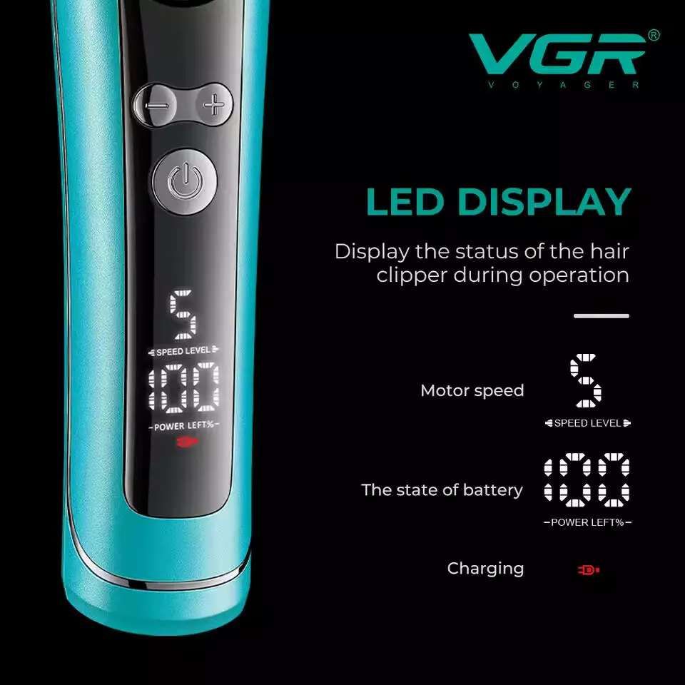 Тример VGR V-299 BLUE, 4 насадки, 9000RPM, 2000 mAh, 5 рівнів швидкості, LED display