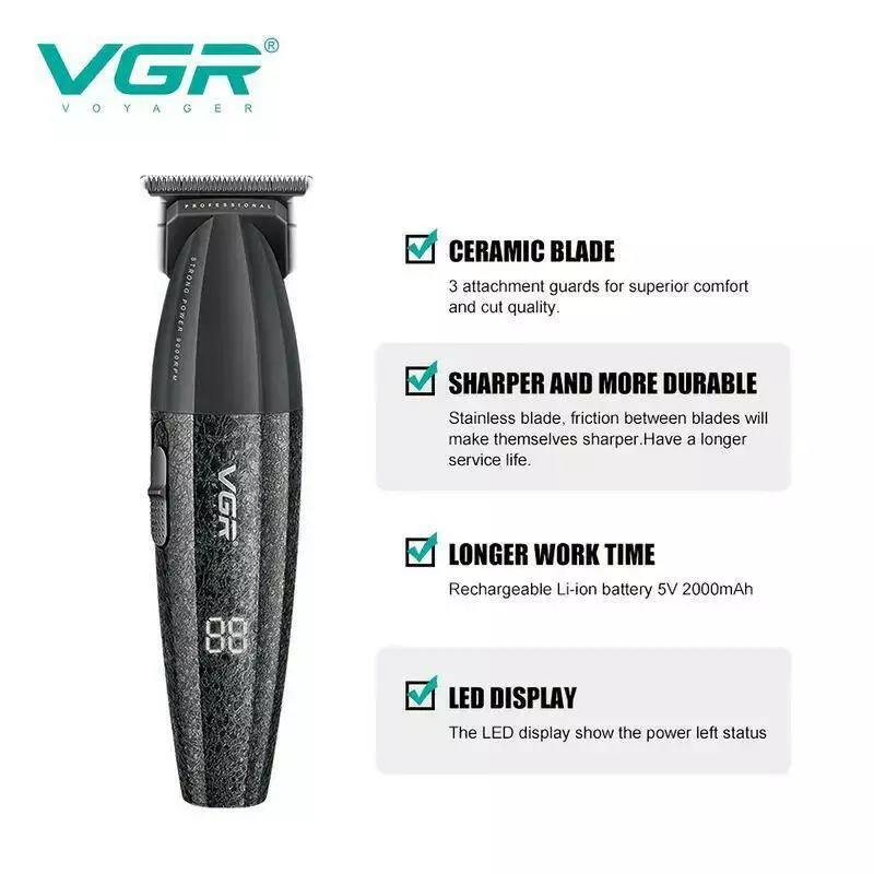 Тример VGR V-640T BLACK, 3 насадки, LED display, 9000RPM