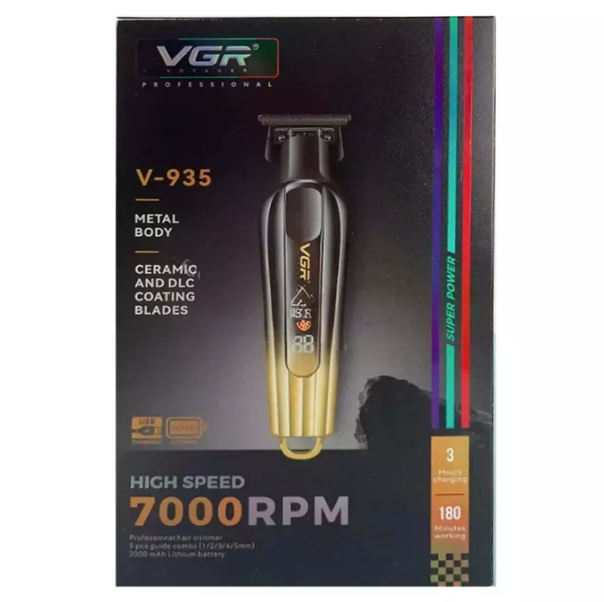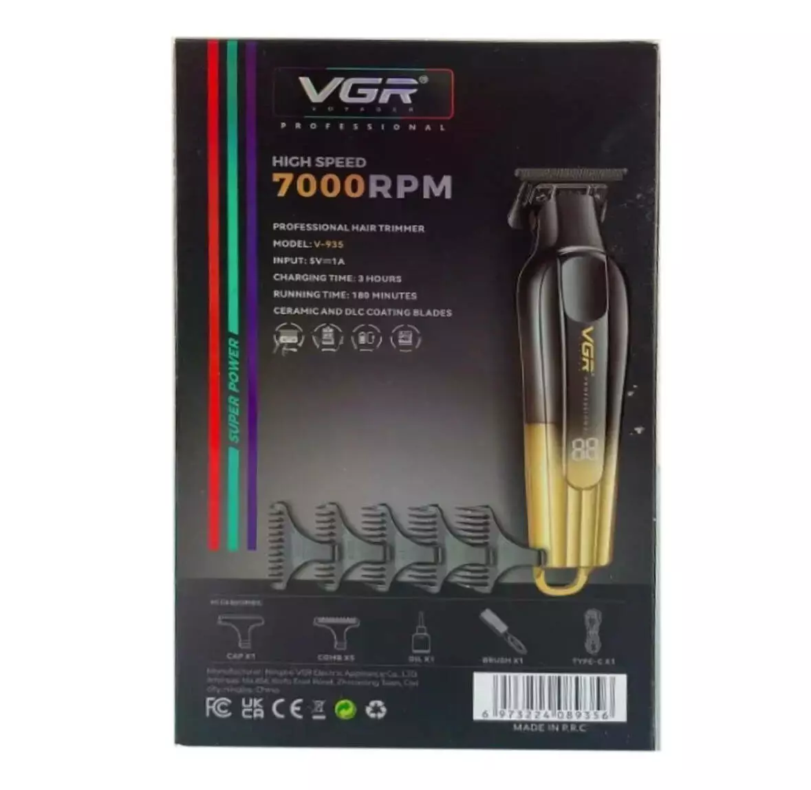 Тример VGR V-935 GOLD, 5 насадок, 7000 RPM, LED display