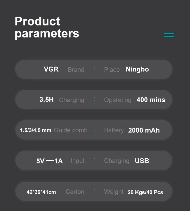 Тример VGR V-987 - це надійний і стильний інструмент, який забезпечить якісний догляд за волоссям та бородою в будь-яких умовах.