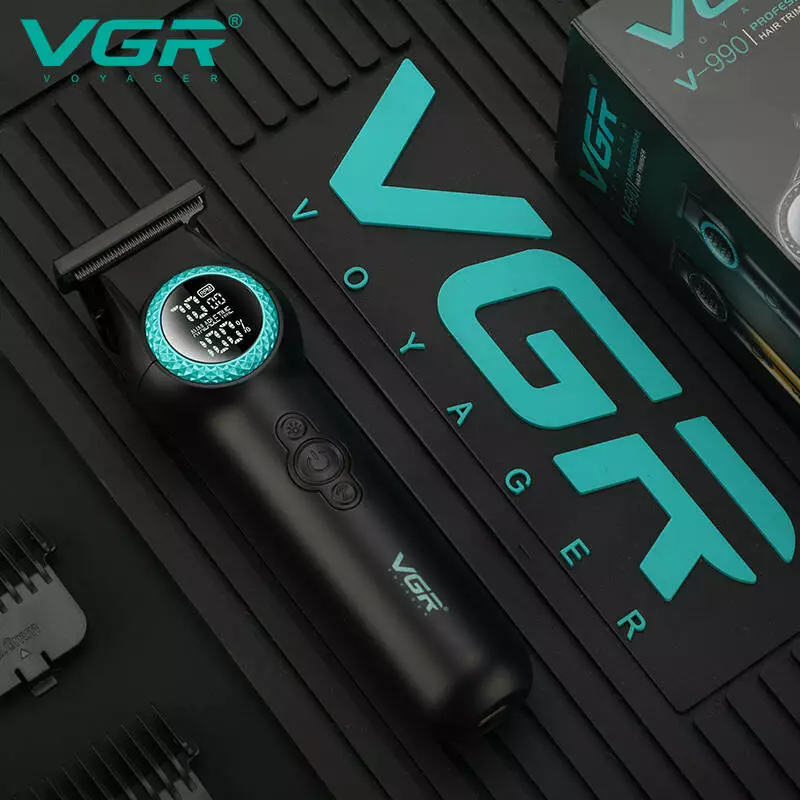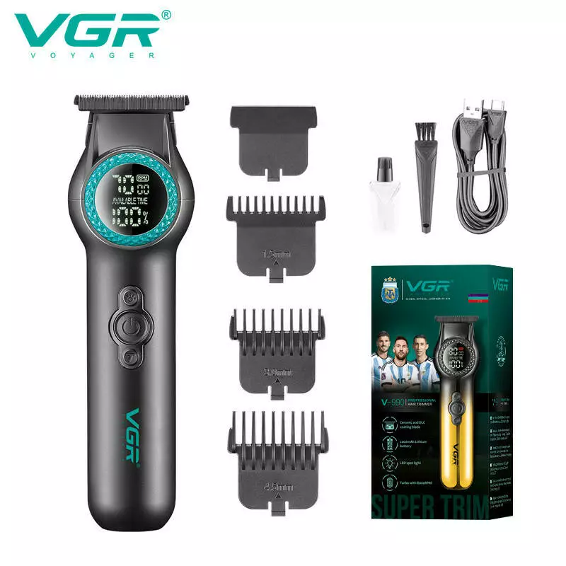 Тример VGR V-990 GREEN, 3 насадки, керамічне лезо, TURBO режим, регулювання потужності 7000-8000 RPM, LED light, LED display