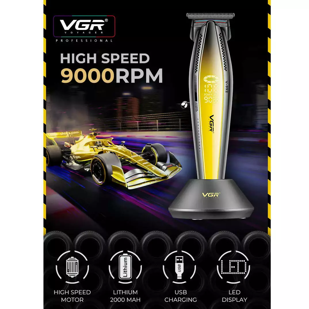 Тример VGR V-992 GOLD, 9000 RPM, 2000 mAh, 3 насадки, LED display
