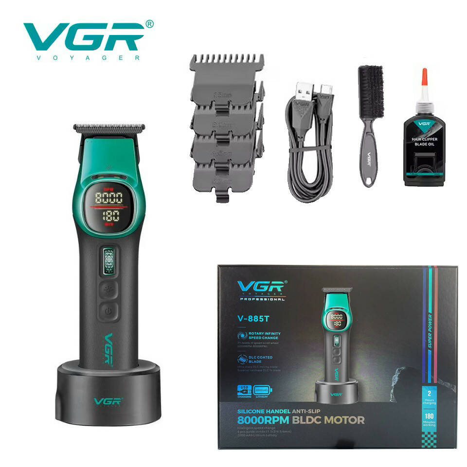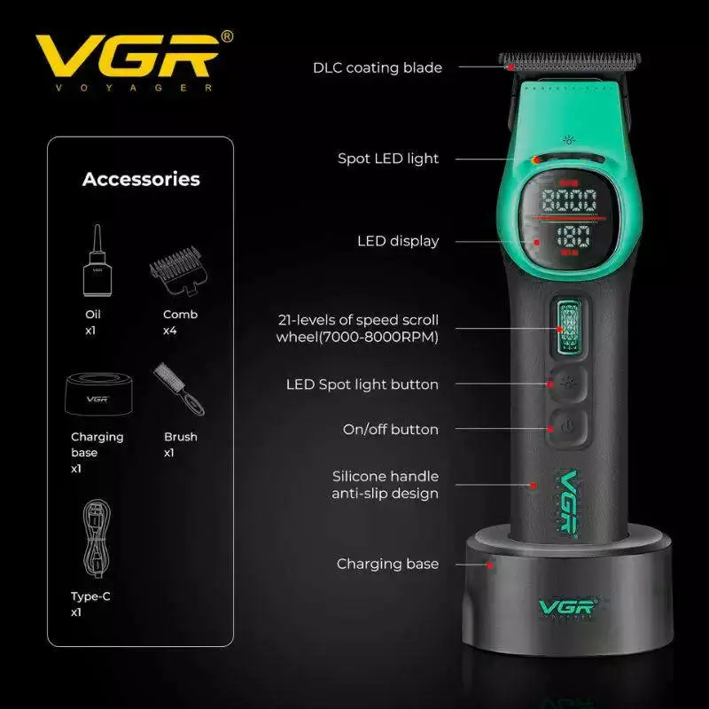 Триммер VGR V-885T GREEN, 4 насадки, LED display