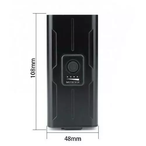 - Дополнительные характеристики: синяя подсветка - индикация заряда, 2 красных LED по бокам фонаря, зеленая подсветка кнопки переключения режимов, Waterproof, фунция PowerBank