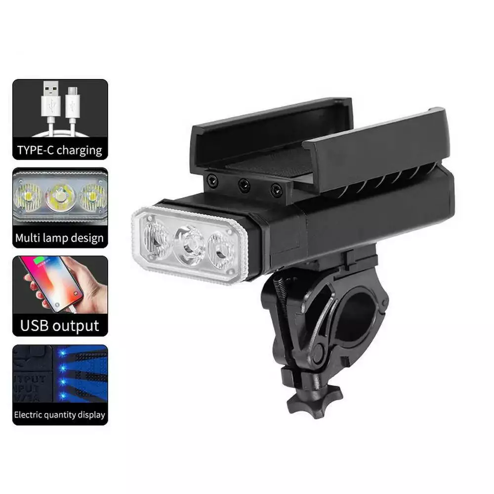 Велоліхтар BK09/Z-03-3T6, Power Bank, Li-Ion акумулятор, ЗП Type-C, кріплення під телефон