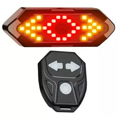 Велоліхтар FY-1820 із зазначенням поворотів (Red+Yellow), Waterproof, ЗП microUSB, вбуд. аккум., пульт управління, CR2032