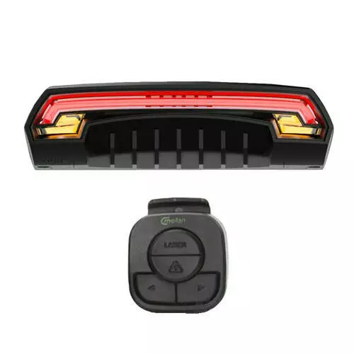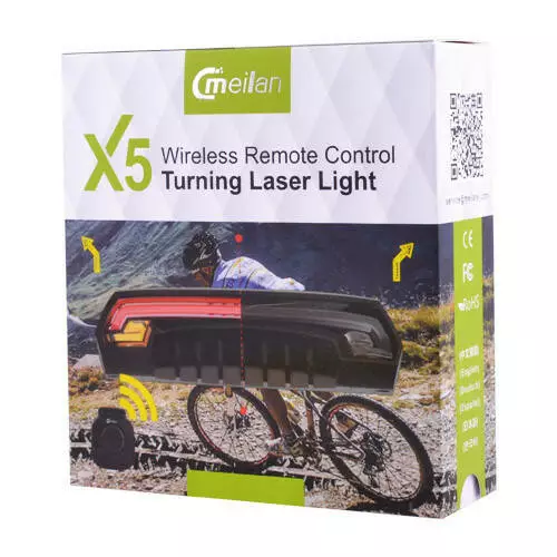Велоліхтар Meilan X5 із зазначенням поворотів (Red+Yellow) та лазерною розміткою, Waterproof, ЗП micro USB, Li-Ion акумулятор
