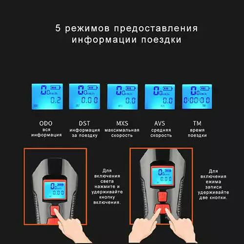 - Дополнительные характеристики: Влагостойкий, динамик воспроизводит 6 различных сигналов, велокомпьютер, подсветка экрана