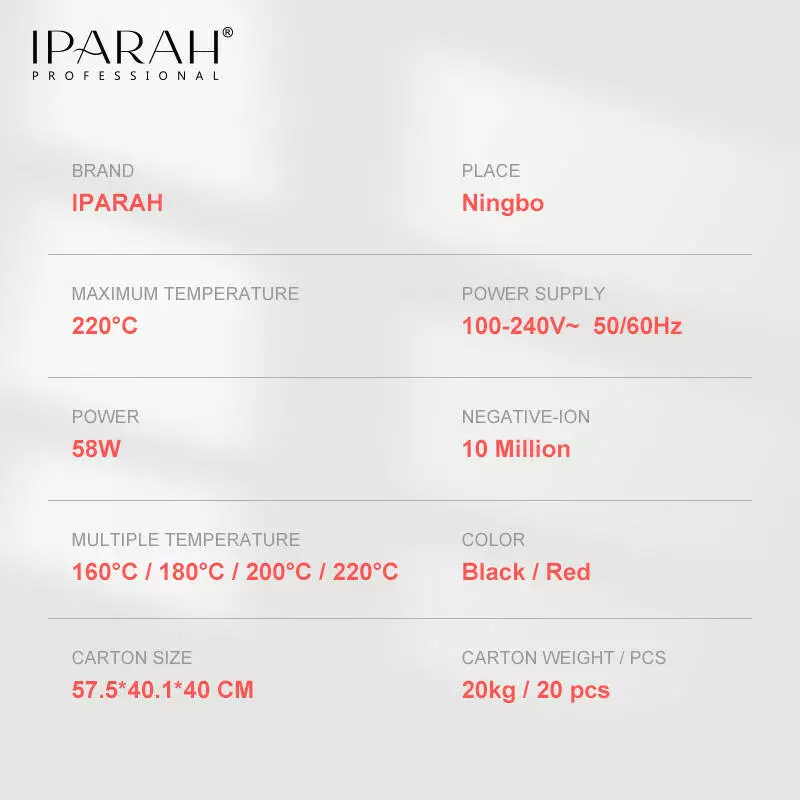 Випрямляч для волосся IPARAH P-103B BLACK, 4 режими, 160-220°C, керамічне покриття, 58 W