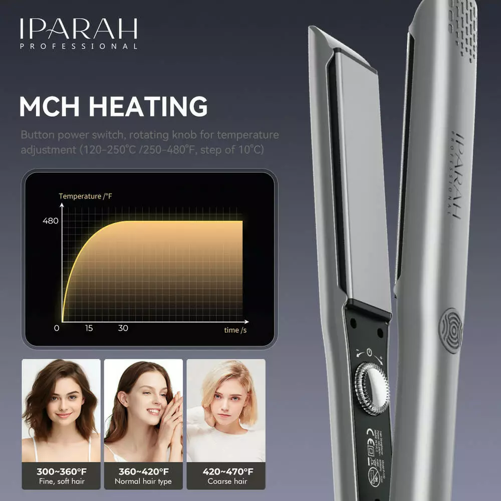 Професійний електричний випрямляч волосся IPARAH P‑131 — це потужний і зручний прилад для створення ідеально гладкого, рівного та доглянутого волосся. Пристрій оснащений ефективним MCH‑нагрівачем та нагрівальними пластинами з керамічним/кератиновим покриттям, які швидко та рівномірно прогріваються, забезпечуючи стабільний результат без зайвих зусиль. Діапазон регульованої температури дозволяє підібрати оптимальний режим для різних типів волосся, а LED/LCD панель спрощує управління налаштуваннями. Кабель, що обертається на 360°, забезпечує свободу руху і комфорт при використанні. Додаткові функції, такі як автоматичне вимкнення та іонізація, підвищують безпеку та якість укладання. Цей випрямляч ідеально підходить як для повсякденного домашнього укладання, так і для професійного стайлінгу.