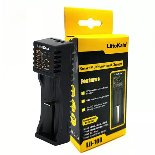 Зарядний пристрій LiitoKala Lii-100, універсальний, 14500/16340/18650/26650, USB, ОРИГІНАЛ