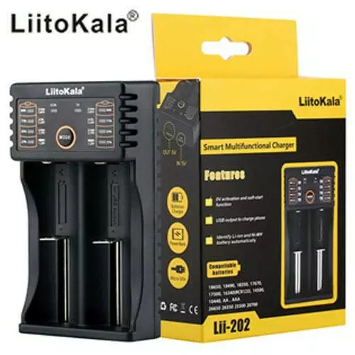 Зарядний пристрій LiitoKala Lii-202, 2Х-10440/14500/16340/17355/17500/17670/18350/18490/18650/22650, 5V, ОРИГІНАЛ
