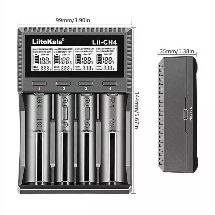 Зарядний пристрій LiitoKala Lii-CH4, 4x26650 /21700 /20700 /18650 /18490 /18350 /17670 /175000 /16340 /14500 /10440 / AA / AAA