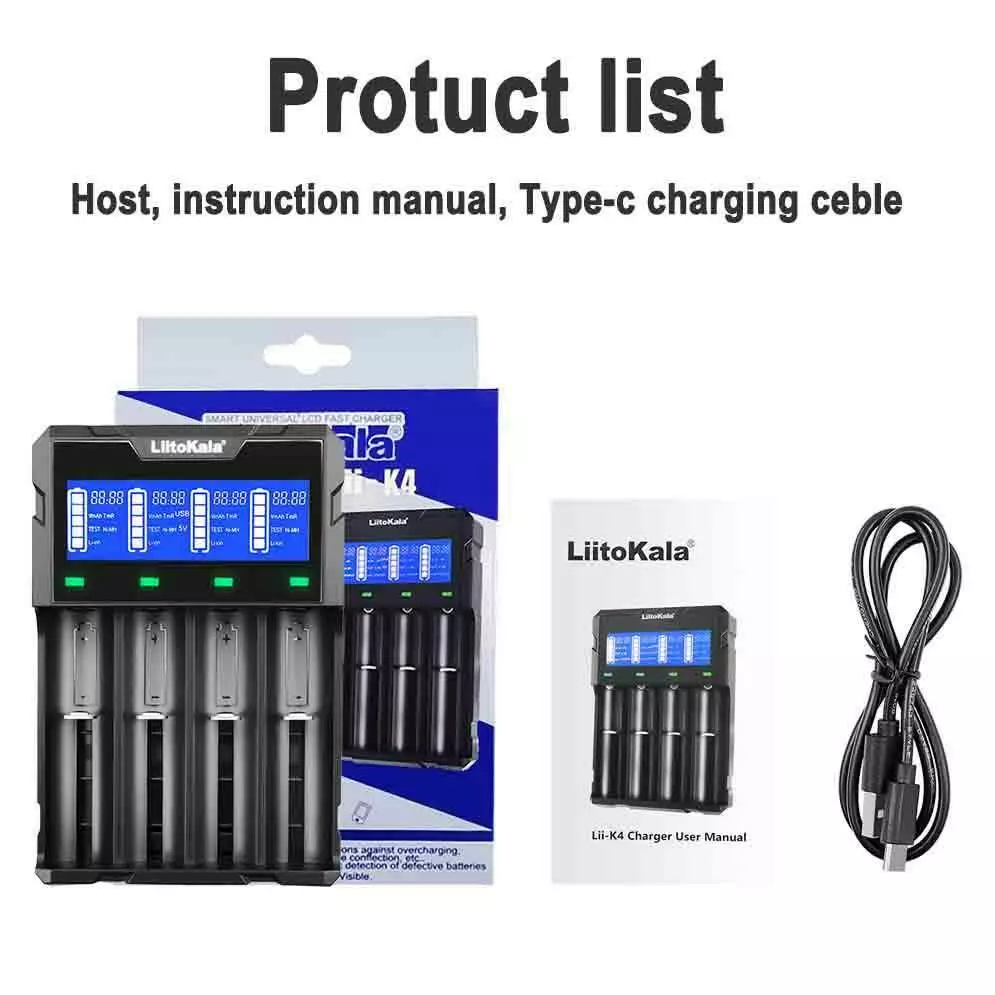 Зарядний пристрій LiitoKala Lii-K4, Power Bank, 18650/ 26650/